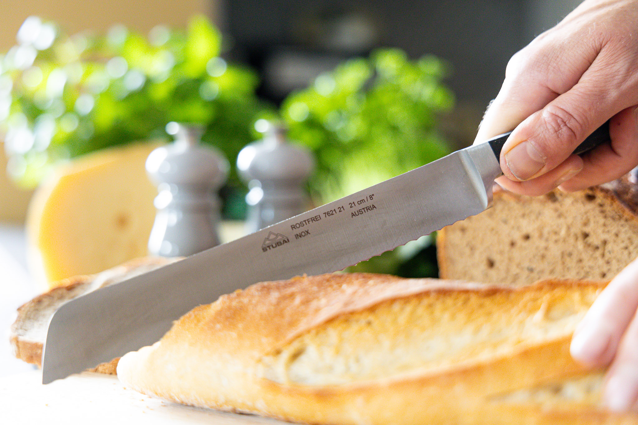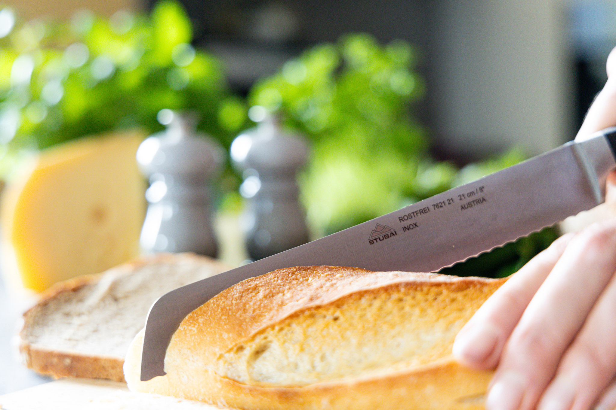 • Nutzen Sie ein Schneidbrett aus Holz, Bambus oder anderem für Lebensmittel zugelassenem Material, um die Klinge Ihres Messers zu schonen und die Schärfe langfristig zu bewahren.