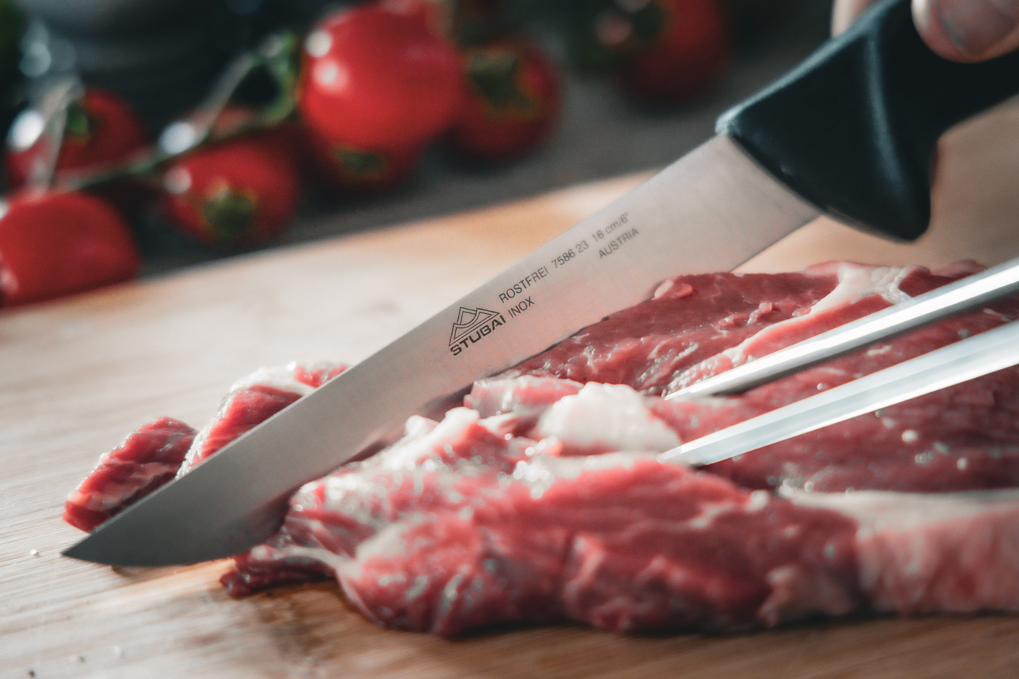 • Stable handling: Always hold the knife by the handle and ensure that the food is placed securely on the surface and does not slip. Make sure the blade does not come into contact with your hand or other body parts, especially during use or when handing the knife to someone else.
